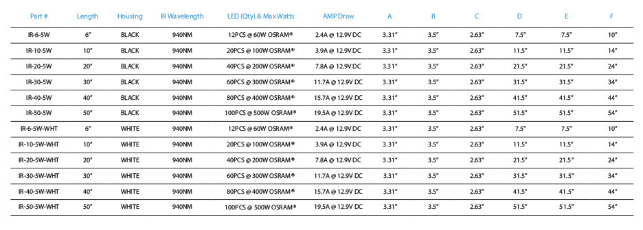 IR-Series LED Light Bar - 940nm Infrared